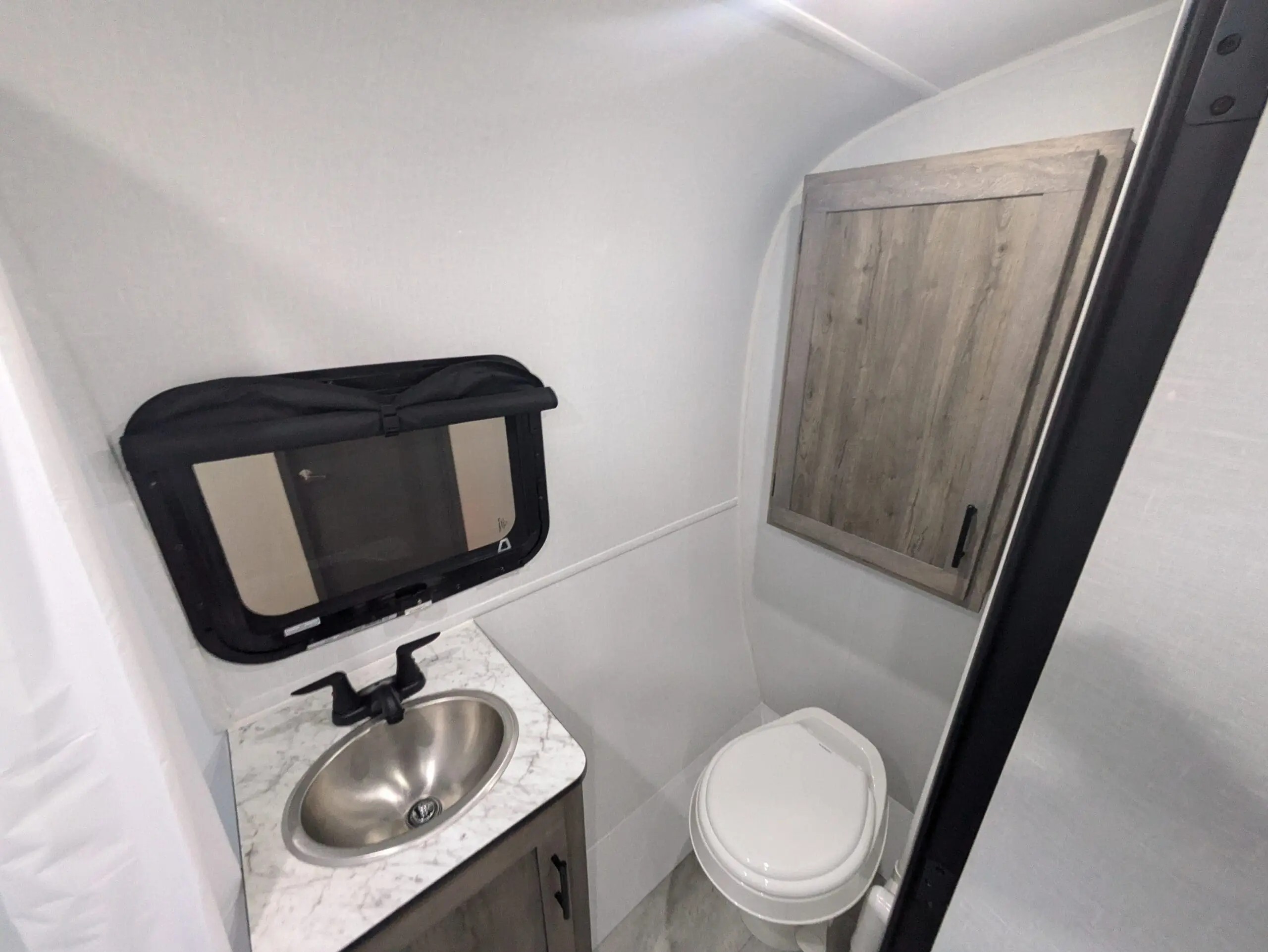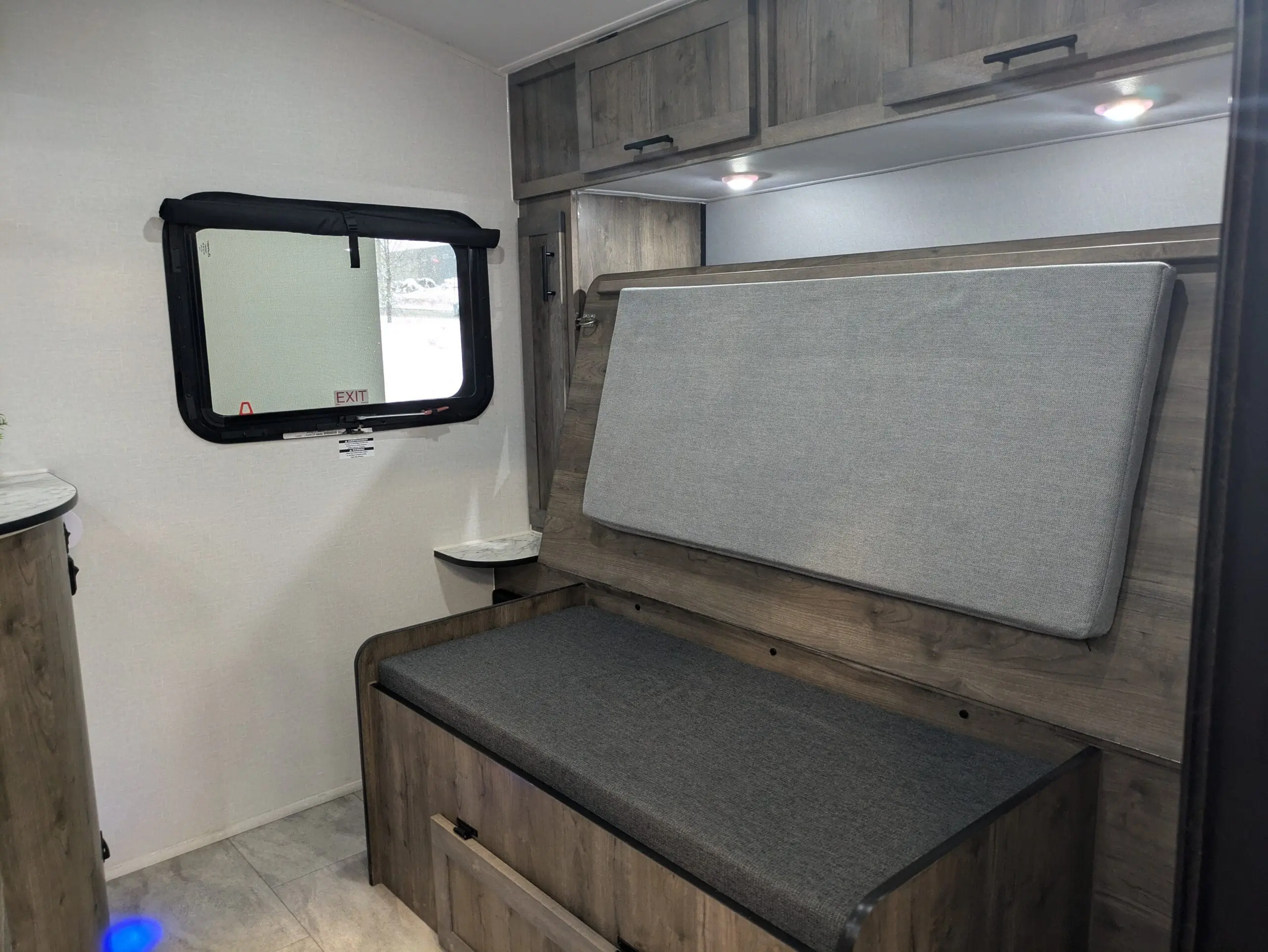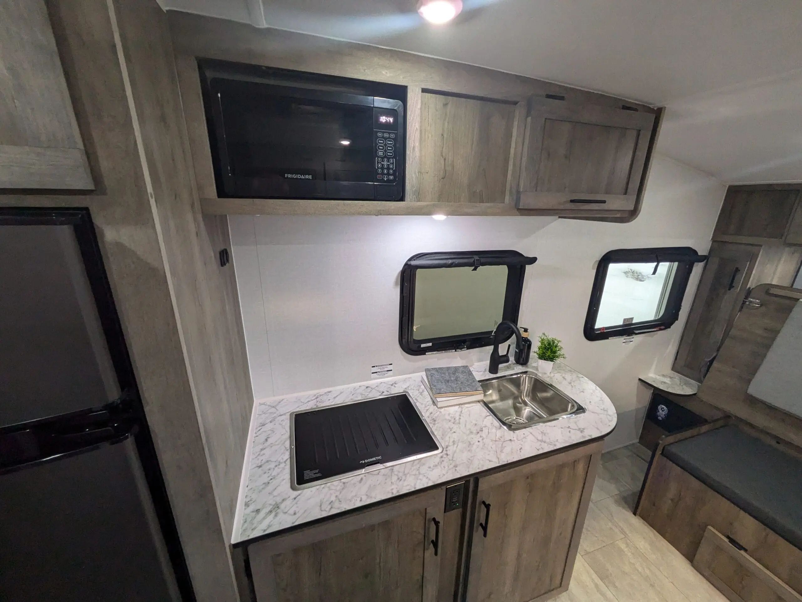 Functionality is not compromised either – easily accommodating a young family of three (plus your furry friend!) with a pull-out sofa bed and convertible dinette bed. The Classic comes fully equipped with a stove, sink, shower, microwave, toilet, heating – everything you need for a comfortable camping trip and a temporary escape from the routines of daily life.
