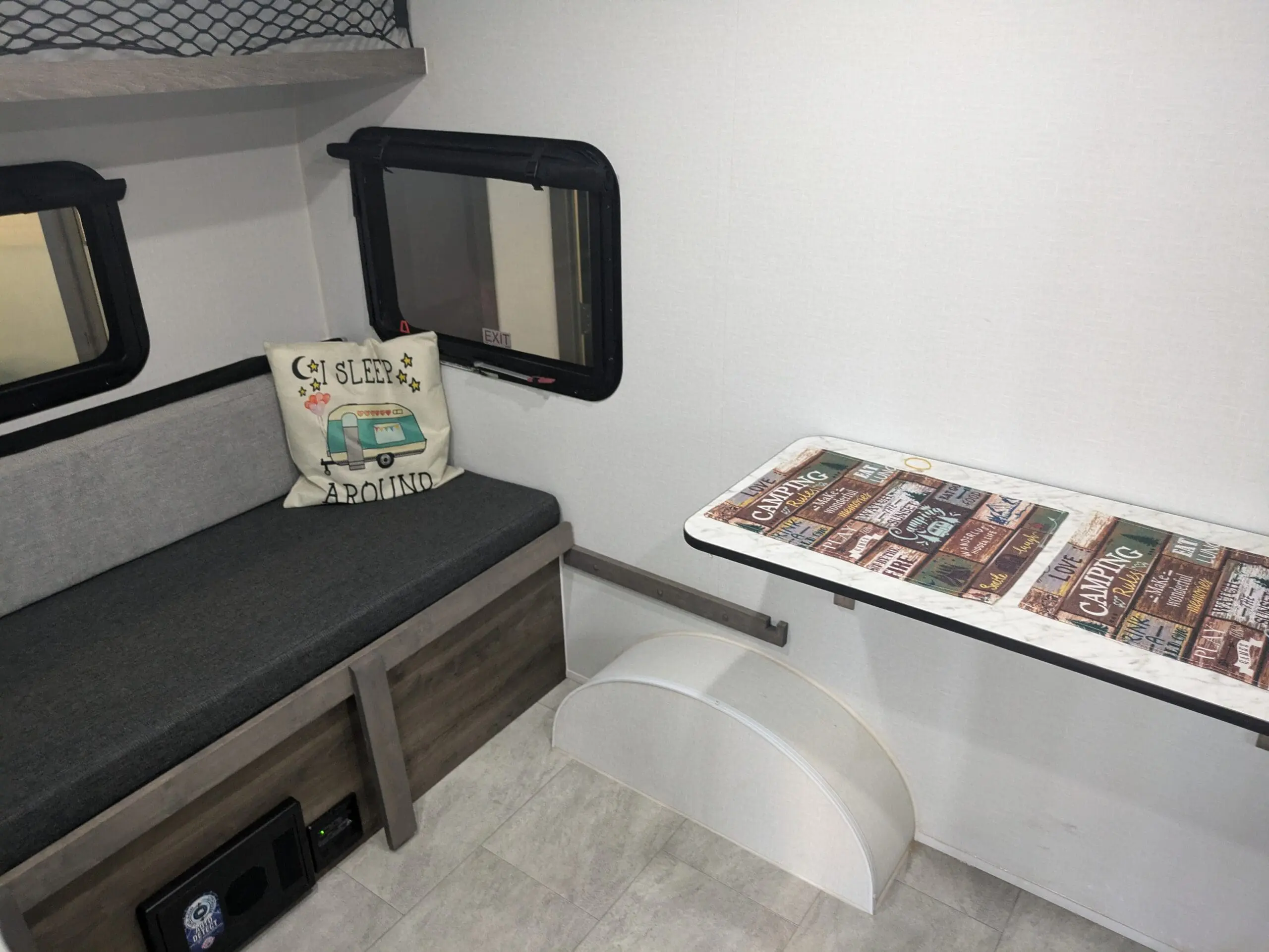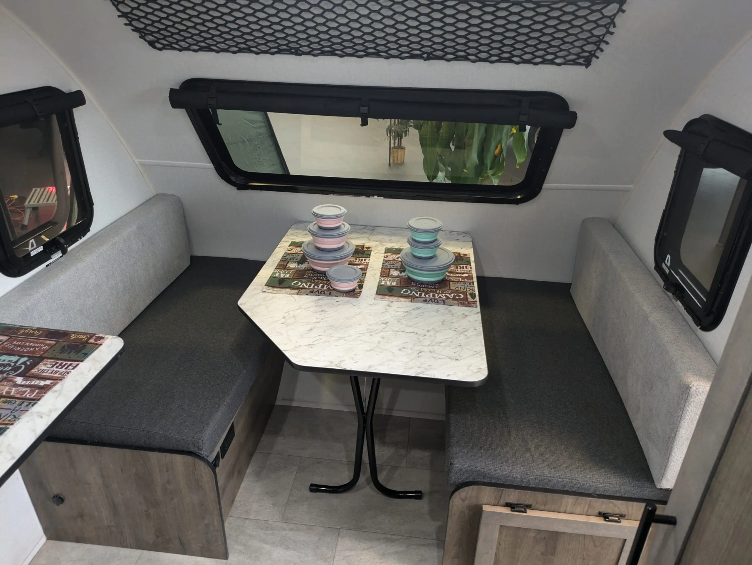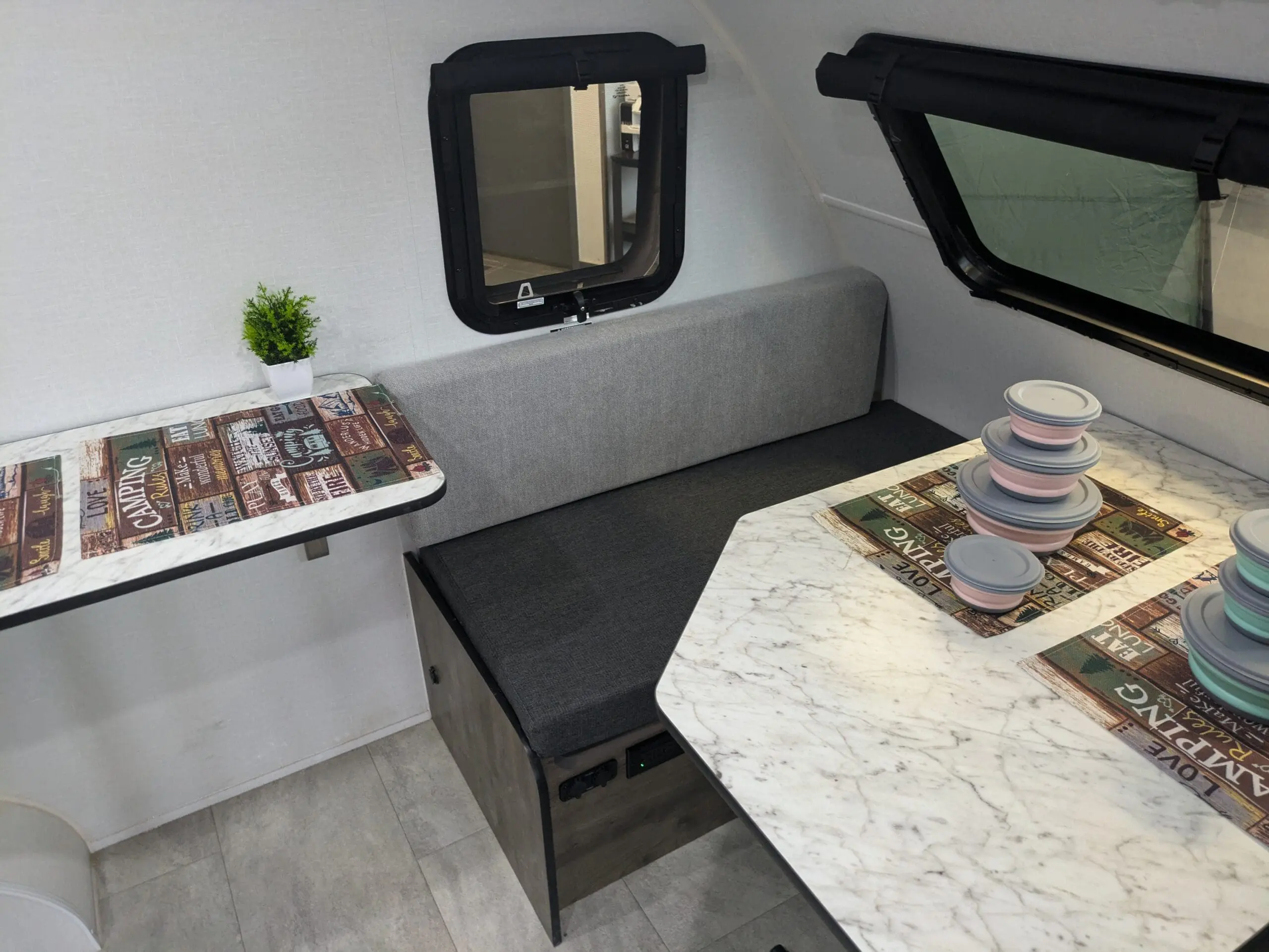 A 4-person trailer weighing only 1050 pounds, towable by a compact car seems like a dream, but it’s reality! 2 folding beds mean the entire family has somewhere warm, dry, and comfortable to rest at night: no more having to toss and turn because you pitched a tent in a bad spot! No camping table outdoors, or the weather is too rainy to spend outside? The included tables and shelves mean the whole family can eat and play where it’s nice and dry.